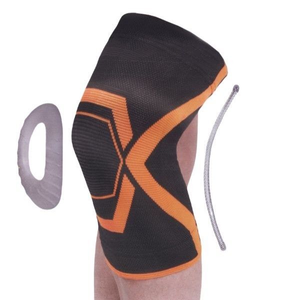 Гибкие стальные пружины обеспечивают боковую стабилизацию колена, а силиконовое кольцо по передней части защищает коленную чашечку.