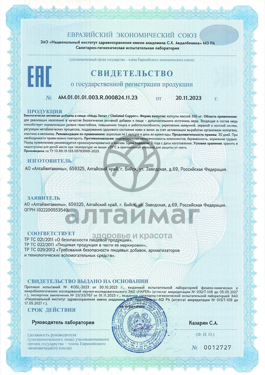 Есть вопросы по товару "Медь Хелат Алтайвитамины 60 капсул"?