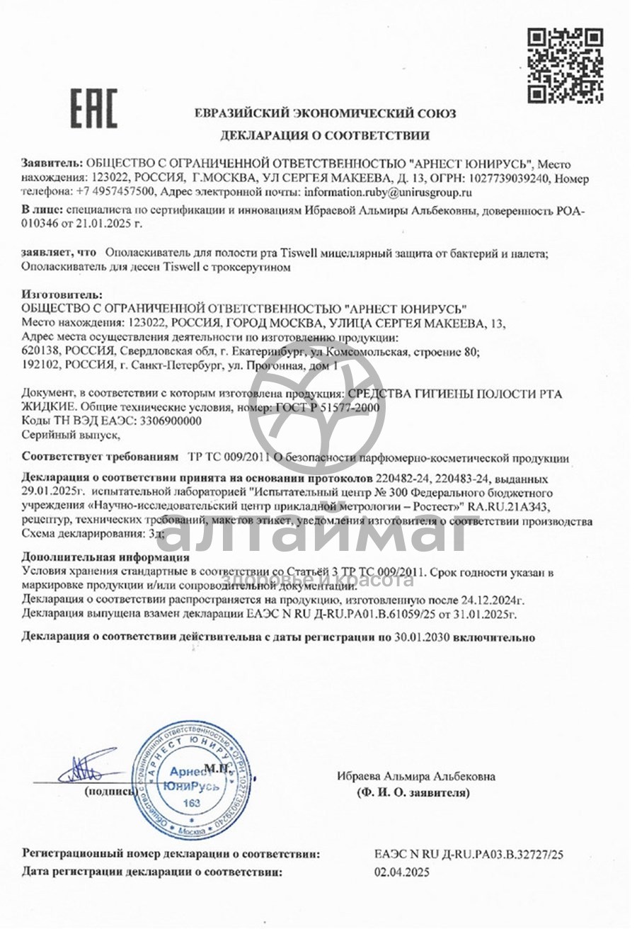 Есть вопросы по товару "Ополаскиватель для полости рта Tiswell мицеллярный MULTI ЗАЩИТА 500мл"?