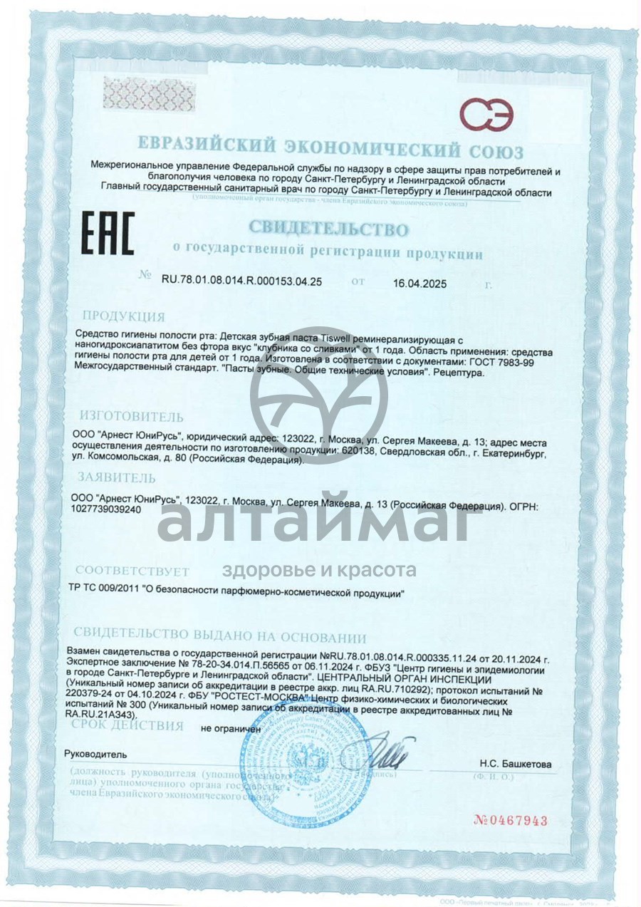 Есть вопросы по товару "Зубная паста детская Tiswell со вкусом клубничного пломбира Nano Mineral 60г"?